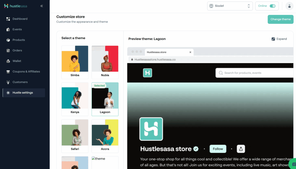 Here you can explore a variety of themes to personalize your storefront.