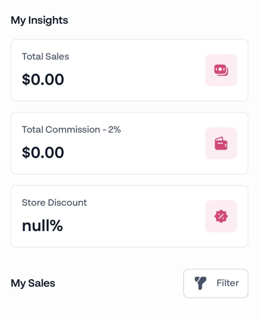 - You will be redirected to the affiliate dashboard where you will be able to view all insights associated with the affiliate.
